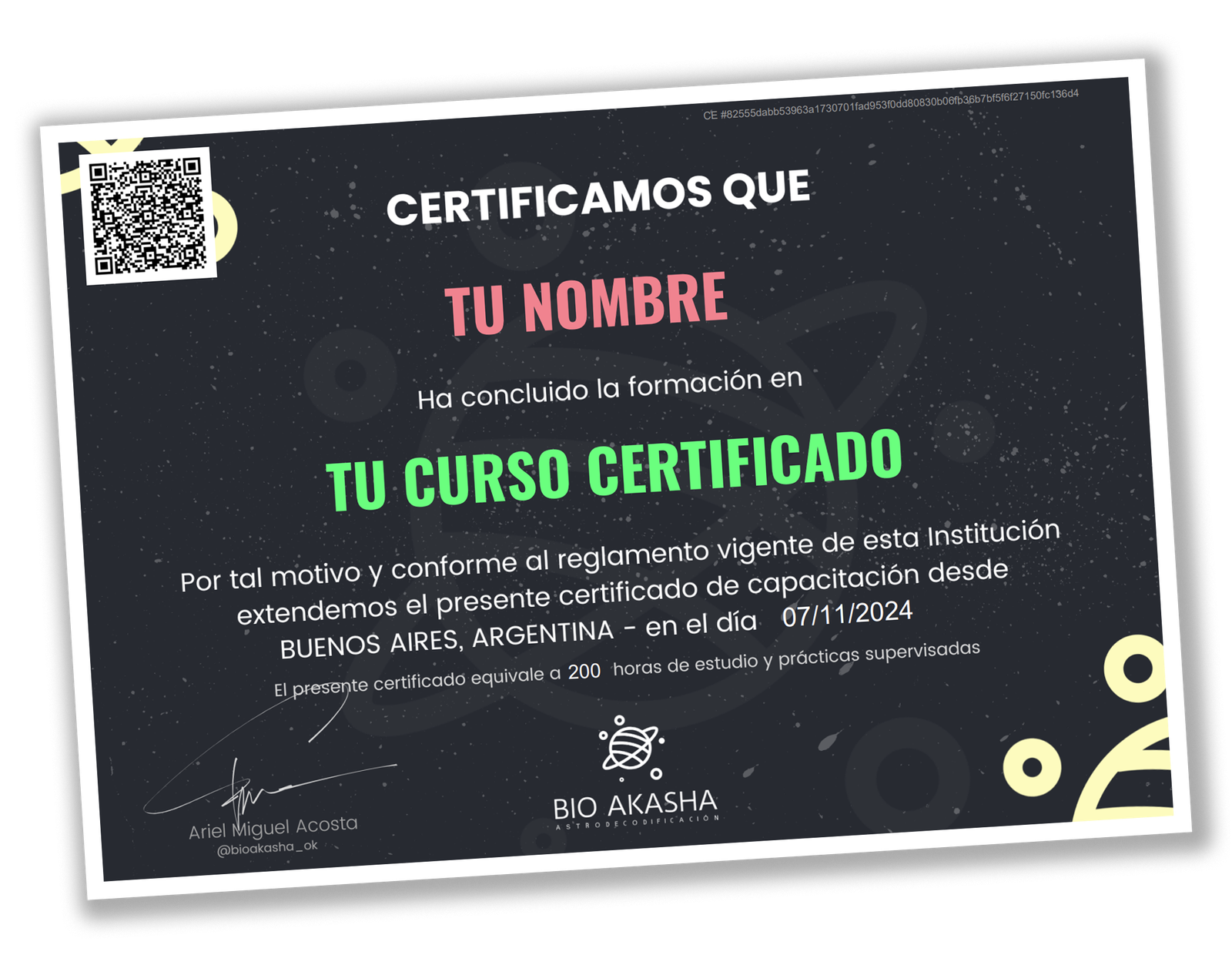 Cada curso tiene su duracion. Si bien una vez adquiridos los cursos no tienen un tiempo estipulado, generalmente recomendamos tomarse 1 a 2 meses por modulo o segmento. Entonces varía según el curso: algunos duran en torno a 6 módulos (como Biodescodificación) y otros se estructuran en niveles (como Registros Akáshicos o Tarot). En promedio, cada certificación completa demora entre 3 y 12 meses, según tu dedicación personal.