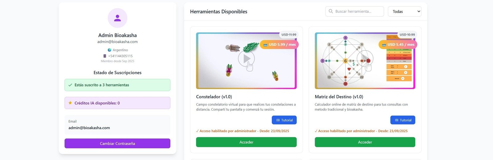 ¿Sos Emprendedor/a holistico/a y necesitás herramientas para agilizar tus sesiones? Ya está disponible Bioakasha App! la plataforma de herramientas para profesionales! Podes darte de alta GRATIS y utilizar las herramientas gratuitas y/o suscribirte a las herramientas de pago, según lo desees y necesites. Vamos otorgando accesos paulatinamente, asi que podes registrarte y dentro de las siguientes 24 a 48hs vas a poder ingresar. Recibirás un email, asi que chequea en SPAM.